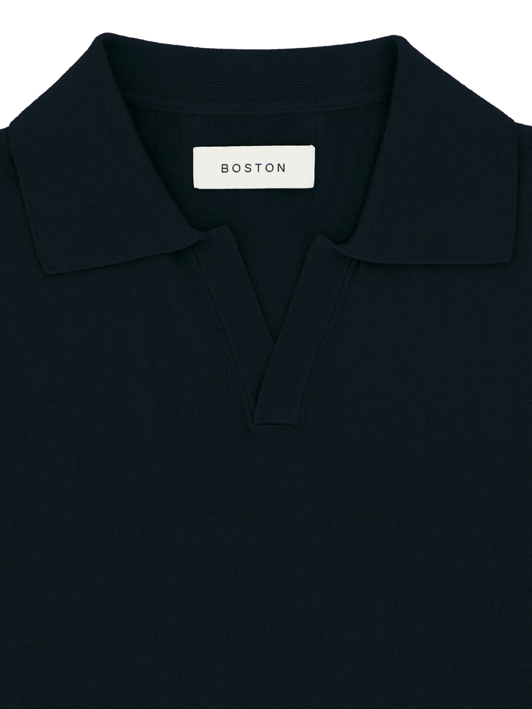Navy Open Neck Knit Polo